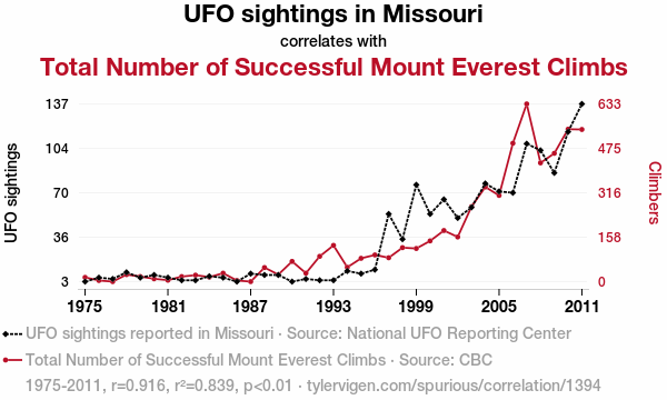 UFO sightings, Mount Everest climbs, correlation, statistical analysis, National UFO Reporting Center, Christchurch City Council, Missouri, extraterrestrial, aliens, peak performance, relationship, p-value, enigma, high-altitude hospitality