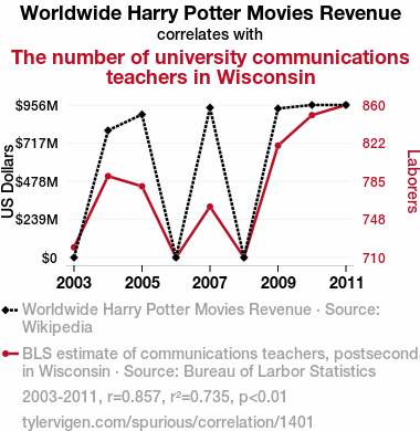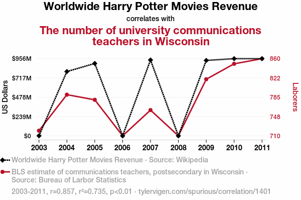 - The spurious research paper: Accio Professors: A Muggle's Guide to the Magical Connection Between Worldwide Harry Potter Movies Revenue and the Number of University Communications Teachers in Wisconsin