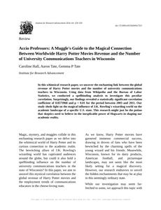 Accio Professors: A Muggle's Guide to the Magical Connection Between Worldwide Harry Potter Movies Revenue and the Number of University Communications Teachers in Wisconsin The Journal of Muggle Studies and Wizarding Economics Jan 2024 Reminder: This paper is AI-generated. Not real! |
