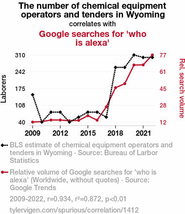 Wyoming chemical equipment operators, Wyoming tenders, chemical equipment operators relationship, tenders relationship, Google searches, who is Alexa, Bureau of Labor Statistics, Google Trends, correlation coefficient, p-value, modern technology, agency, Wyoming chemical equipment operators and tenders, chemical bond, modern technology implications