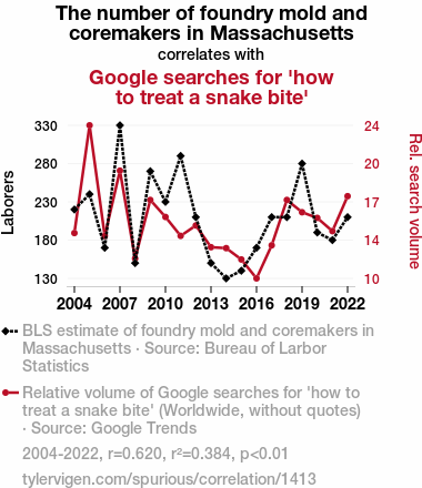foundry mold, coremakers, Massachusetts, snake bite treatment, snakebite remedies, correlation coefficient, industrial occupations, public health inquiries, labor statistics, Google Trends, Bureau of Labor Statistics