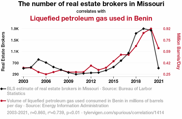 User prompt: Please make up a funny explanation for how increases in The number of real estate brokers in Missouri positively influenced Liquefied petroleum gas used in Benin. Add a funny one-liner at the end.