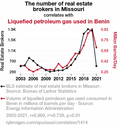 User prompt: Please provide potential search keywords for a paper titled Propane and Proprietary Properties: A Probing Probe into the Punning Paradox of Missouri Real Estate Brokers and Liquefied Petroleum Gas Consumption in Benin with an abstract of This study sets out to explore the somewhat perplexing, yet intriguing, relationship between the density of real estate brokers in Missouri and the consumption of liquefied petroleum gas in Benin. With an eclectic mix of data from the Bureau of Labor Statistics and the Energy Information Administration, our research team delved into this thoroughly entertaining and slightly absurd intersection of real estate and energy markets. The correlation coefficient of 0.8598860 (p < 0.01) for the period from 2003 to 2021 suggests a surprisingly strong connection between these two seemingly unrelated variables. Our findings not only shed light on this unusual correlation but also bring a lighthearted perspective to the often serious world of economic and energy research. After all, who knew that the number of real estate brokers in Missouri could have a gas-tly impact on LPG consumption in Benin?