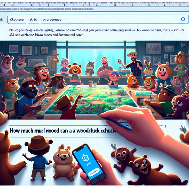 User prompt: Please describe a visual scene that prominently depicts both The number of art directors in Louisiana and Google searches for 'how much wood can a woodchuck chuck' together. Keep the description simple.