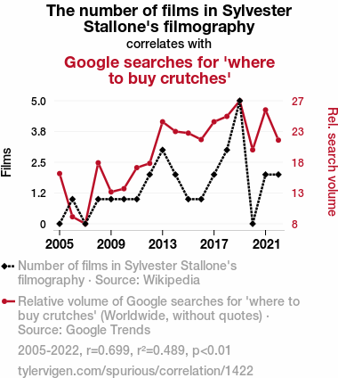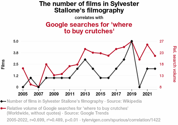 - The spurious research paper: The Sly-Limpic Games: Investigating the Relationship Between Sylvester Stallone's Film Count and Online Searches for Mobility Aids