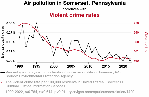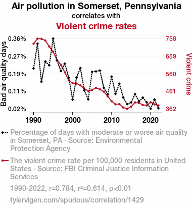 - The spurious research paper: The Thin Air Between Them: Exploring the Relationship Between Air Pollution in Somerset, Pennsylvania and Violent Crime Rates