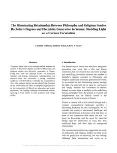 User prompt: Please provide potential search keywords for a paper titled The Illuminating Relationship Between Philosophy and Religious Studies Bachelor's Degrees and Electricity Generation in Yemen: Shedding Light on a Curious Correlation with an abstract of This paper sheds light on the unexpected link between the number of Bachelor's degrees awarded in Philosophy and religious studies and electricity generation in Yemen. Using data from the National Center for Education Statistics and Energy Information Administration, our research team has uncovered a strong correlation coefficient of 0.9675700 (p < 0.01) for the period 2012 to 2021. Our analysis delves into the electrifying dynamics of this relationship and offers an enlightening perspective on the intersection of liberal arts education and power generation. The findings challenge conventional wisdom, sparking a lively debate in both academic and energy circles.