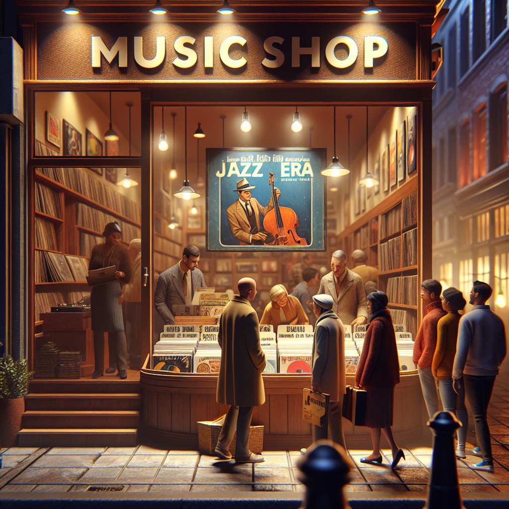 Prompt: [ Realistic ] Generate an image of a cozy record store with warm lighting, showing a prominently displayed vintage LP album of Ruth Etting's greatest hits in the front window. Passersby can be seen stopping to admire the album cover, drawn in by the classic elegance of Ruth and the allure of vinyl nostalgia. Inside the store, customers are excitedly flipping through racks of LPs, with Ruth's album occasionally being plucked from the shelves by both seasoned collectors and younger music enthusiasts. The atmosphere should capture the timeless charm and warmth of browsing through classic records in a nostalgic setting. The depiction should include only scenes, people, and objects, it should not include text or speech bubbles.