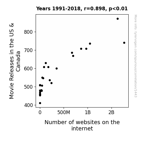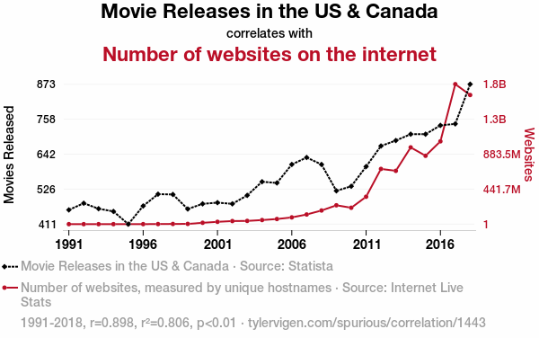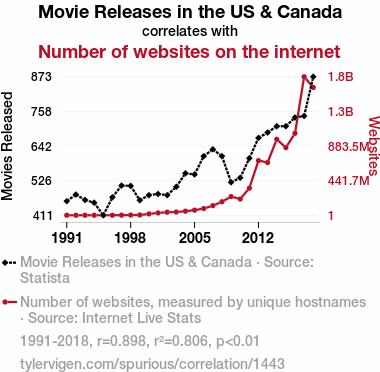 - The spurious research paper: Reel Connections: Exploring the Correlation between Movie Releases in the US & Canada and Number of Websites on the Internet