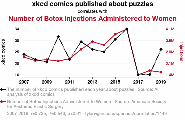 The unexpected link between xkcd puzzles and the number of Botox injections administered to women is no laughing matter, yet it seems to evoke more than a few grins. Our research has shone a spotlight on the curious correlation, and it appears we're not the only ones scratching our heads while trying not to furrow our brows.