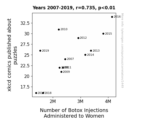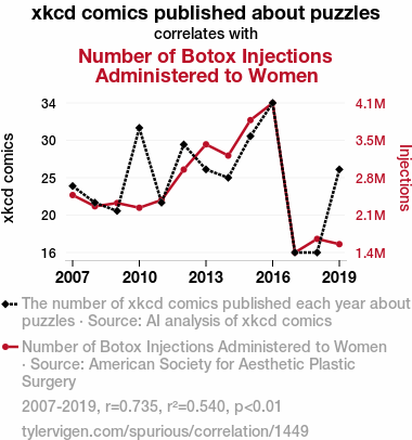 - The spurious research paper: Smile Lines and xkcd Designs: An Injection of Humor into the Correlation Between Puzzle Comics and Botox Administered to Women