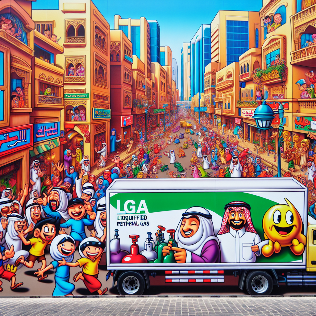 ChatGPT: [ Cute cartoon ] Create an image of a vibrant city street in Bahrain, bustling with activity. A quirky xkcd comic strip is prominently displayed on a building wall, capturing the attention of a diverse group of delighted, cartoony onlookers. In the midst of the joyful crowd, a cheerful truck adorned with pleasant Liquefied Petroleum Gas graphics meanders through the animated cityscape. The scene effortlessly combines humor, lively urban life, and everyday practicalities.