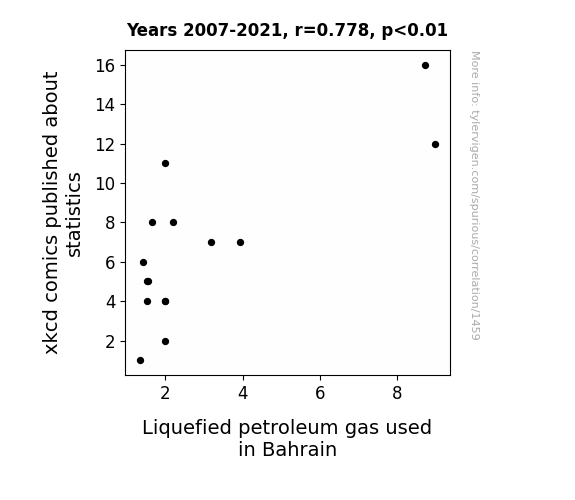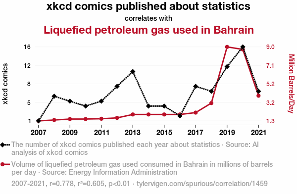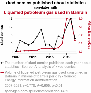 - The spurious research paper: The xkcd Factor: Correlating Liquefied Petroleum Gas Consumption in Bahrain with Statistical Comics