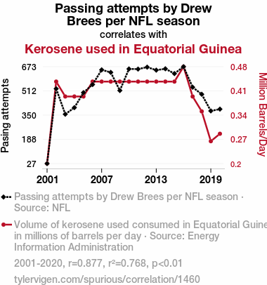 - The spurious research paper: A Flaming Connection: Drew Brees's Passing Attempts and the Kerosene Quandary in Equatorial Guinea