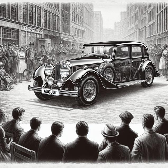 Prompt: Generate an image in the style of a black-and-white newspaper illustration depicting a bustling town street. In the center, there is a sleek Hyundai car named "August" with its license plate in full view, drawing a crowd of admirers. In the background, a group of Hyundai engineers are depicted working diligently, highlighting their efforts to address and fix recalls to ensure the safety of the vehicles. The scene should capture the attention of the viewers through the contrast between the admiration for the car and the focused troubleshooting in the background. The depiction should include only scenes, people, and objects, it should not include text or speech bubbles.