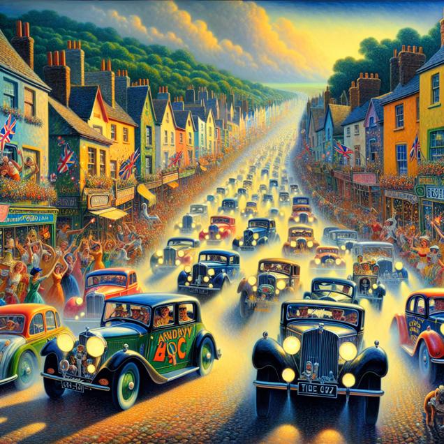 Prompt: An image that looks like it is a scene from a Disney movie, depicting a bustling town with vibrant buildings lining the streets. A line of cars with "Maci" emblazoned on their license plates stretches around the block, with happy and eager drivers behind the wheels. In the distance, a group of cars with their headlights obscured by thick fog are being recalled for visibility issues, creating a sense of mystery and intrigue. The atmosphere is filled with excitement and animated energy. The depiction should include only scenes, people, and objects, it should not include text or speech bubbles.