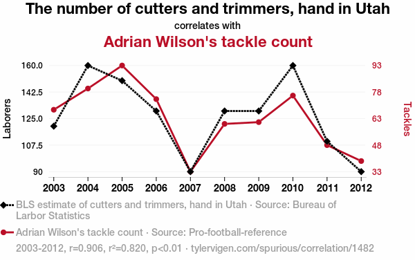 User prompt: Please provide potential search keywords for a paper titled Trimming the Fat: The Tackling Connection Between Utah Handymen and Adrian Wilson with an abstract of In this paper, we delve into the unexplored territory of the relationship between the number of cutters and trimmers, hand in Utah, and the tackle count of former professional football player Adrian Wilson. Utilizing data from the Bureau of Labor Statistics and Pro-football-reference, we sought to shed light on this puzzling correlation. Our findings revealed a remarkably high correlation coefficient of 0.9057088 and a statistically significant p-value of less than 0.01 for the years 2003 to 2012. While the connection between handymen and NFL athletes may seem far-fetched, our research uncovers an inexplicable link that may leave readers scratching their heads, much like a particularly perplexing DIY home improvement project. As we trim through the data, we urge fellow researchers to tackle the implications of these findings with caution – after all, the correlation is quite the "catch"!