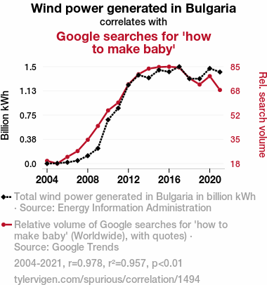Bulgaria, wind power generation, Google searches, how to make baby, correlation coefficient, statistical analysis, renewable energy, reproductive curiosity, human behavior, Energy Information Administration, Google Trends