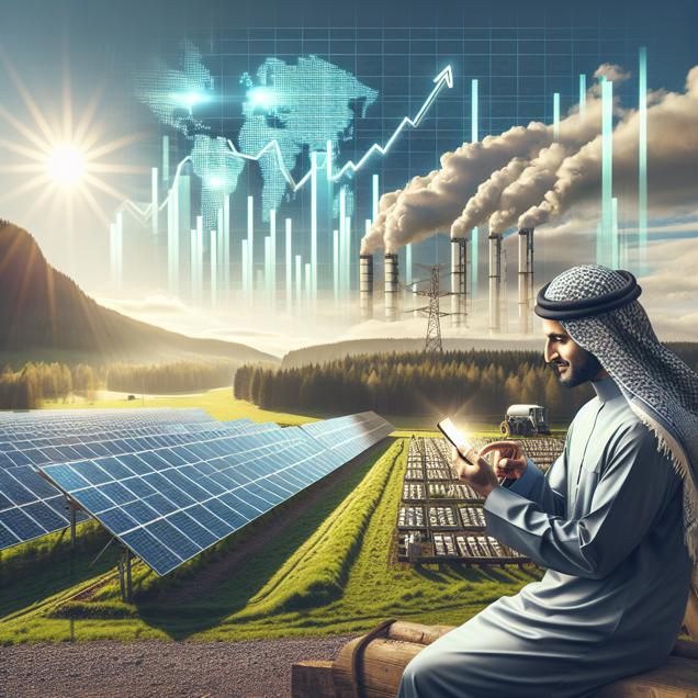 ChatGPT: Generate an image of a serene countryside in Sweden, where the gentle rays of the sun illuminate the landscape. In the foreground, showcase orderly rows of solar panels standing as a symbol of sustainable energy. Next to the solar panels, depict a person standing with a mobile phone in hand, wearing a contented smile while observing the phone’s screen. On the mobile phone screen, visually represent a soaring stock graph symbolizing Amazon's success. The image should capture the peaceful coexistence of nature, renewable energy, and modern technology.