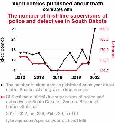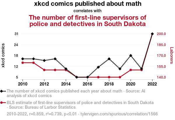 User prompt: Please make up a funny explanation for how an increase in xkcd comics published about math caused The number of first-line supervisors of police and detectives in South Dakota to increase. Add a funny one-liner at the end.