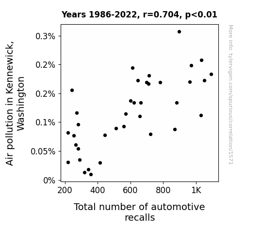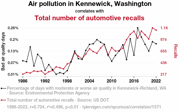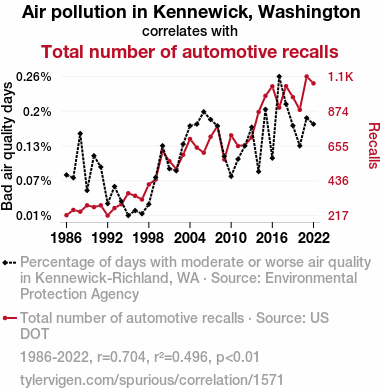 - The spurious research paper: Air-mazing Pollution: The Link Between Air Quality and Automotive Recalls in Kennewick, Washington