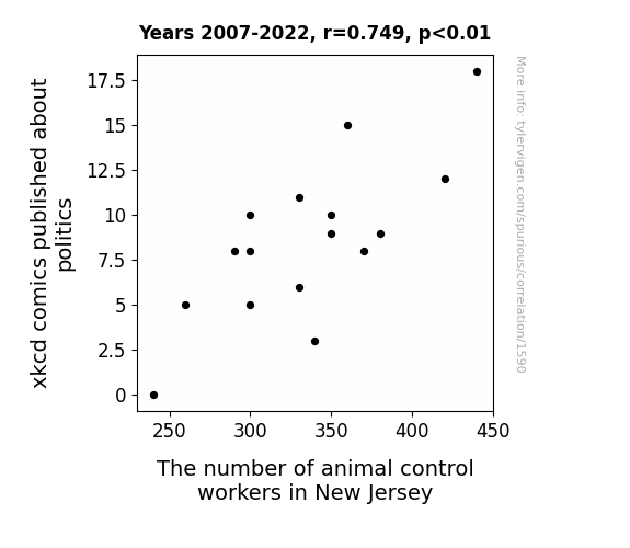 - The spurious research paper: The Xkcd Factor: Anecdotal Evidence of the Impact of Political Comics on Animal Control Employment Trends in New Jersey