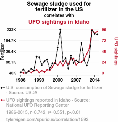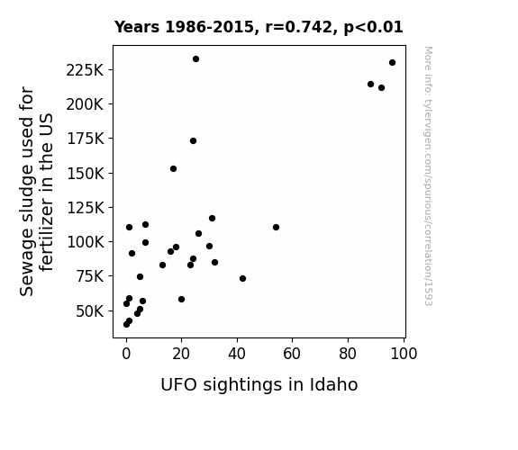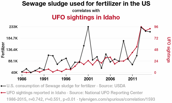 sewage sludge, fertilizer, UFO sightings, Idaho, USDA, National UFO Reporting Center, quantitative analysis, correlation coefficient, p-value, cosmic coincidence, terrestrial, extraterrestrial connection