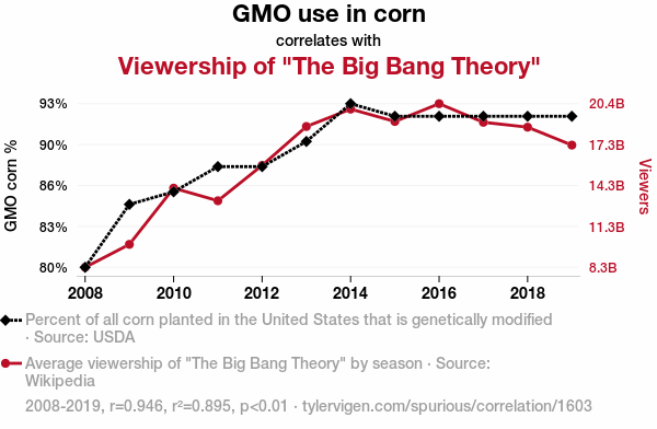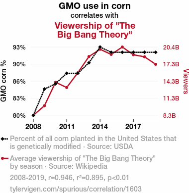 - The spurious research paper: The Maize of Big Bang: Exploring the Relationship Between GMO Corn Usage and Viewership of The Big Bang Theory