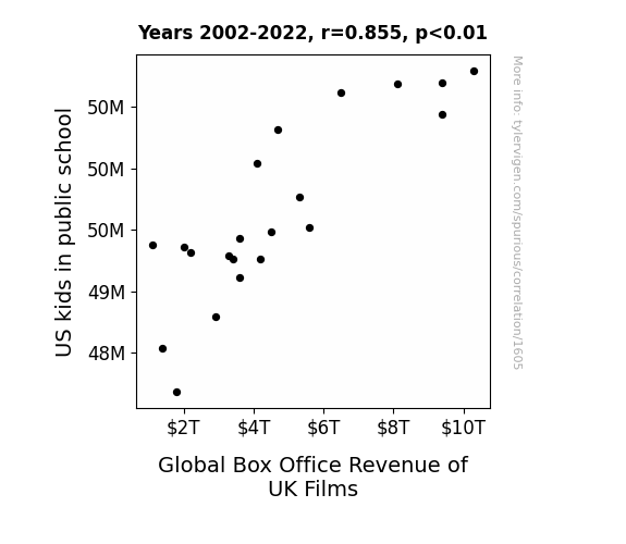 *Exactly, the unexpected connections between US public education and UK film revenues can really tickle your funny bone!*