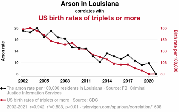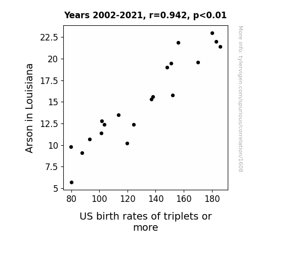 - The spurious research paper: Blazing Birth Booms: The Bizarre Link Between Louisiana Arson and Triplet Trends