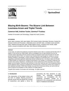 Blazing Birth Booms: The Bizarre Link Between Louisiana Arson and Triplet Trends Journal of Eccentric Epidemiology Jan 2024 Reminder: This paper is AI-generated. Not real! |