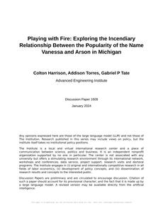 Playing with Fire: Exploring the Incendiary Relationship Between the Popularity of the Name Vanessa and Arson in Michigan The Journal of Eccentric Sociological Studies Jan 2024 Reminder: This paper is AI-generated. Not real! |