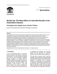 Please draft the title and abstract of an academic research paper presenting the findings of the connection between Popularity of the first name Mara and Automotive recalls for issues with the Seat Belts. Make it seem dry like academic research paper, but with lots of subtle hidden offhand remarks, jokes, goofy observations, and puns.