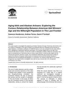 Aging Idols and Alaskan Artisans: Exploring the Curious Relationship Between American Idol Winners' Age and the Millwright Population in The Last Frontier The Journal of Cultural Demographics and Pop Culture Trends Jan 2024 Reminder: This paper is AI-generated. Not real! |