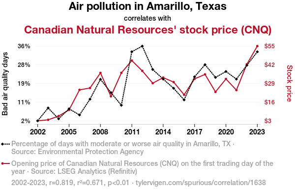 - The spurious research paper: Smogged in Stocks: The Air Pollution-Amarillo Connection and CNQ Stock Price Effects