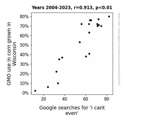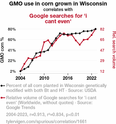 - The spurious research paper: Kernel of Truth: Exploring the Interplay Between GMO Corn and 'I Can't Even' Google Searches in Wisconsin