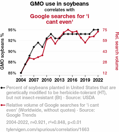 - The spurious research paper: Soy Much on My Mind: The GMO-Soybean and 'I Cant Even' Google Searches Connection