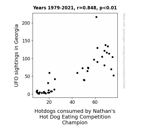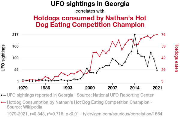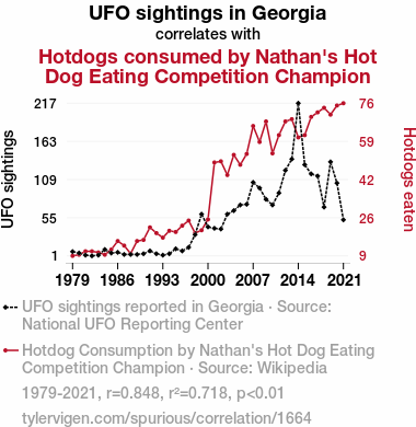 - The spurious research paper: The Unidentified Flying Object of Desire: Exploring the Connection Between UFO Sightings in Georgia and Nathan's Hot Dog Eating Competition Champion Hotdog Consumption