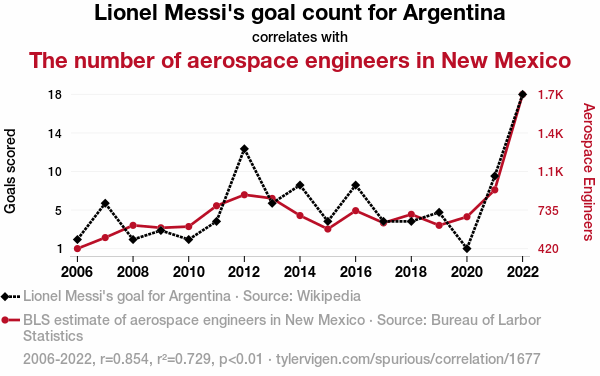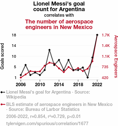 - The spurious research paper: The Tango of Tango: The Tenuous Tether Between Lionel Messi's Goal Count for Argentina and The Number of Aerospace Engineers in New Mexico