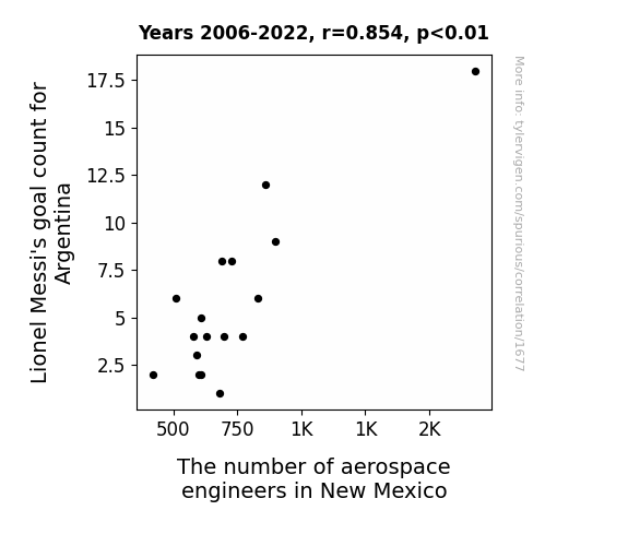 The Tango of Tango: The Tenuous Tether Between Lionel Messi's Goal Count for Argentina and The Number of Aerospace Engineers in New Mexico