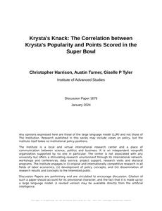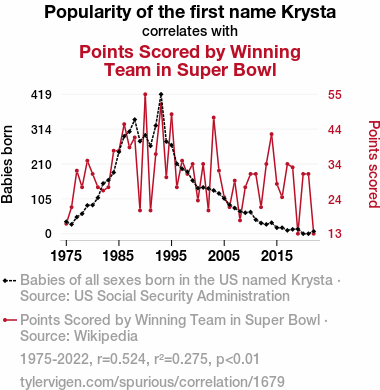 - The spurious research paper: Krysta's Knack: The Correlation between Krysta's Popularity and Points Scored in the Super Bowl