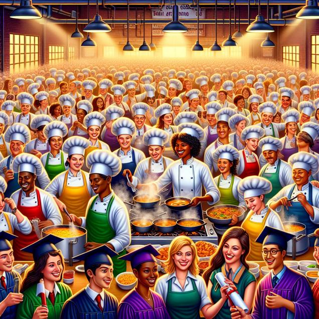 ChatGPT: In a bustling kitchen in Illinois, a group of cooks in aprons and hats quickly prepare orders, while in a nearby room, a group of smiling students in graduation robes proudly hold up their Associate's degrees in Dental Assisting.