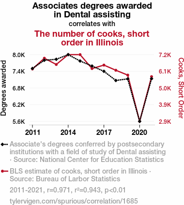 - The spurious research paper: Molar Matters: The Correlation Between Dental Assisting Associate Degrees and Short Order Cook Employment in Illinois