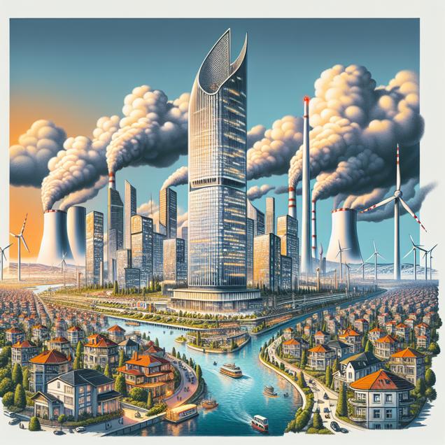 ChatGPT: Create an image of a vibrant city in Turkiye, where a towering skyscraper proudly displays the name "Theodore" in bold letters. In the background, geothermal power plants are visible, with steam rising from the turbines and the city skyline. The bustling streets are filled with diverse activities, featuring signage, architecture, and people resonating with the popularity of the name Theodore and the widespread use of geothermal power. The scene should capture the energy and innovation of the city, with a focus on the convergence of urban life and sustainable technology.