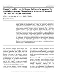 User prompt: Please provide potential search keywords for a paper titled Neptune's Neighbors and the Noteworthy Nectar: An Analysis of the Association between the Distance between Neptune and Uranus and The Coca-Cola Company's stock price with an abstract of The present study examines the intriguing relationship between the distance separating the planets Neptune and Uranus and the stock price of The Coca-Cola Company (KO). Utilizing data derived from Astropy and LSEG Analytics (Refinitiv), the research team embarked on the whimsical quest to investigate this unusual pairing. Remarkably, our analysis unveiled a striking correlation coefficient of 0.9693957, with a statistically significant p-value (p < 0.01) during the timespan spanning from 2002 to 2023.