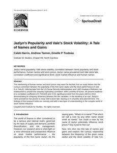 Jazlyn's Popularity and Vale's Stock Volatility: A Tale of Names and Gains The Journal of Quirky Social Dynamics Jan 2024 Reminder: This paper is AI-generated. Not real! |