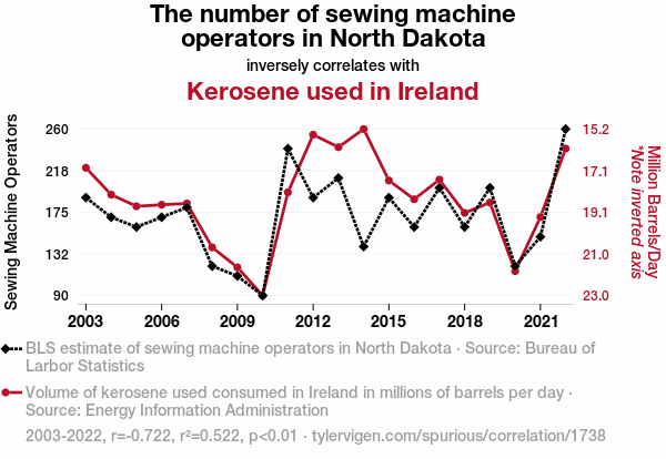 Stitching Together the Thread of Correlation: The Curious Case of Sewing Machine Operators in North Dakota and Kerosene Consumption in Ireland