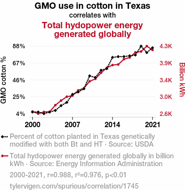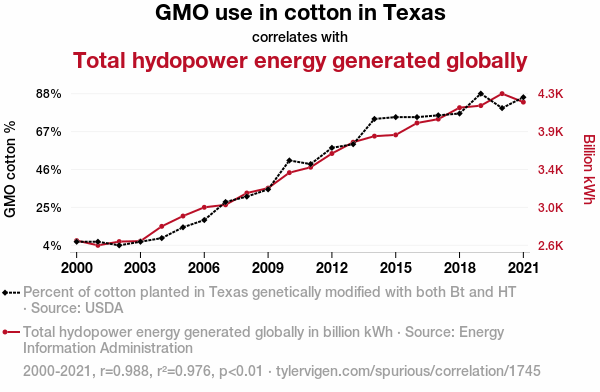 - The spurious research paper: Cotton's GMOs and Global Hydro: A Correlation That'll Make You Go Batty