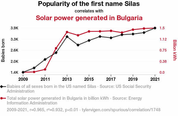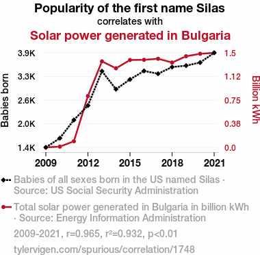 - The spurious research paper: Shining Silas: Illuminating the Correlation between the Name Popularity of Silas and Solar Power Generation in Bulgaria