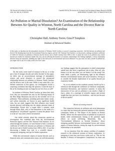 Air Pollution or Marital Dissolution? An Examination of the Relationship Between Air Quality in Winston, North Carolina and the Divorce Rate in North Carolina